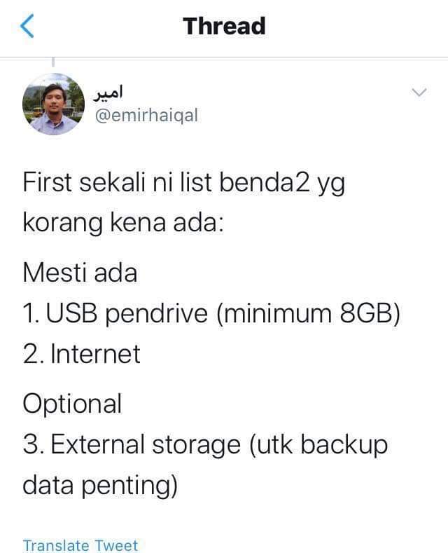 Menurut warga Twitter tersebut, re-installation Windows sebegini adalah untuk membuag segala malware / bugs / virus yang melekat pada desktop / laptop anda yang menyebabkan komputer anda mengalami gangguan seperti slow loading.